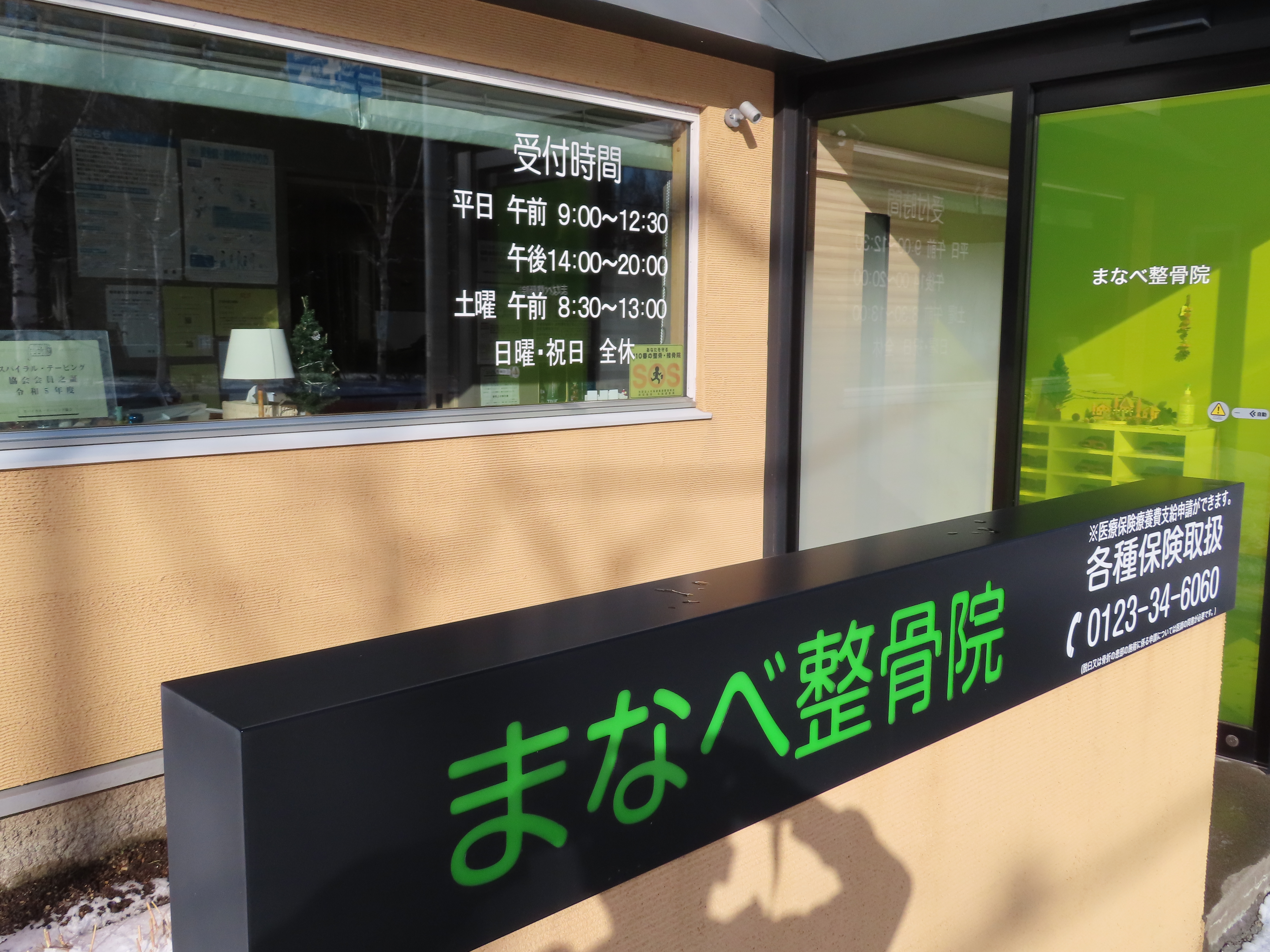 まなべ整骨院 〒061-1409 恵庭市黄金南7-9-14 TEL 0123-34-6060